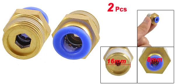 Item Name Quick Fittings Material Solid Brass, Plastic Color Gold Tone, Blue Thread Size 3/8" PT Thread Diameter 16mm Inner Diameter (Blue End) 8mm/ 0.31" Total Size 18 x 17mm/ 0.71" x 0.67" (L*Max. D) Weight 31g Package Content 2 x Quick Fittings - Reviews