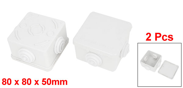 Product Name Square Junction Box Total Size 80 x 80 x 50mm/ 3.1" x 3.1" x 2"(L*W*H) Cable Entries Number 4 Mounted Type Surface Mounted Hole Diameter 26mm/ 1" Waterproof Rating IP44 Material ABS, Rubber Color White Net Weight 128g Package 2 x Square Junction Box - Reviews