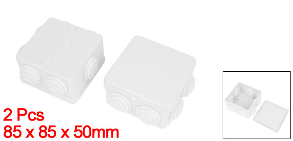 Product Name Square Junction Box Total Size 85 x 85 x 50mm/ 3.3" x 3.3" x 2"(L*W*H) Cable Entries Number 7 Mounted Type Surface Mounted Hole Diameter 27mm/ 1.1" Waterproof Rating IP44 Material ABS, Rubber Color White Net Weight 179g Package 2 x Square Junction Box - Reviews