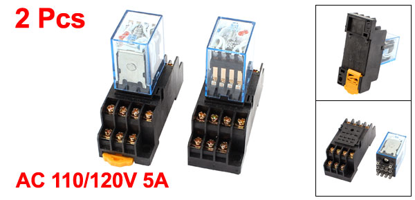 2 Pcs AC 110/120V Coil 14Pin 4PDT 35mm DIN Rail Electromagnetic Power Relay