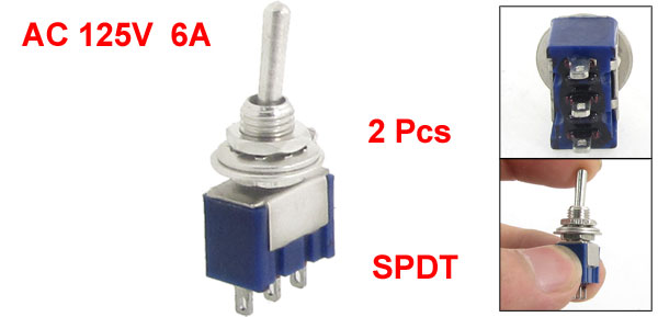 AC 125V, 6A Pin Number 3 Pins Position 2 Positions(ON/ON) Type SPDT(Latching) Mounting Hole Diameter 5.8mm / 0.23" Body Size(Approx.) 13 x 8 x 9.7mm / 0.5" x 0.3" x 0.38"(L*W*T) Total Height 33mm / 1.3" Material Plastic, Metal Weight 10g Package Content 2 Pcs x Toggle Switch - Reviews