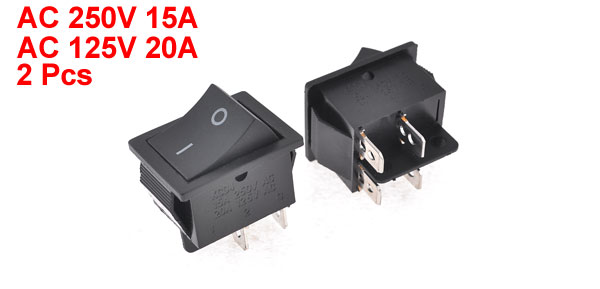 Item Name Rocker Switch Type On/ Off (DPST) Voltage & Current AC250V, 15A AC125V, 20A Overall Size(Pin Included) 31 x 25 x 35mm/ 1.2" x 1" x 1.4"(L*W*H) Mount Hole Size 26 x 22mm / 1" x 0.87"(L*W) Color Black Material Plastic & Metal Total Net Weight 24g Package Content 2 x Rocker Switch - Reviews