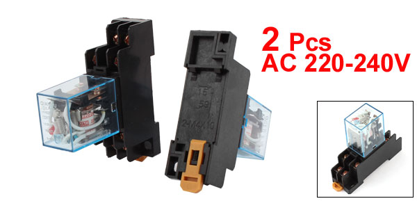 2 Pcs AC 220V-240V DPDT 8 Pins Red LED General Purpose Power Relay w Socket Base