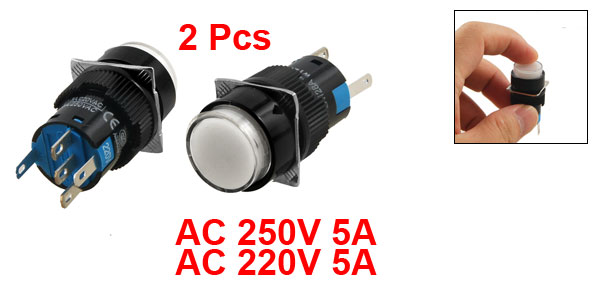 2 Pcs AC 220V White Light Momentary SPDT Round AC 250V 5A Push Button Switch