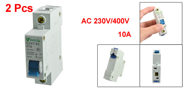 Product Name Miniature Circuit Breaker Model No. DZ47-63 C10 Exrternal Material Plastic, Metal Rated Voltage AC 230V/400V Rated Current 10A Breaking Capacity 4500A Total Size (Approx.) 77 x 18 x 70mm/ 3" x 0.7" x 2.7" (L*W*T) Number of Poles 1 Mount Type DIN Rail Weight 166g Package Content 2 x Miniature Circuit Breaker - Reviews