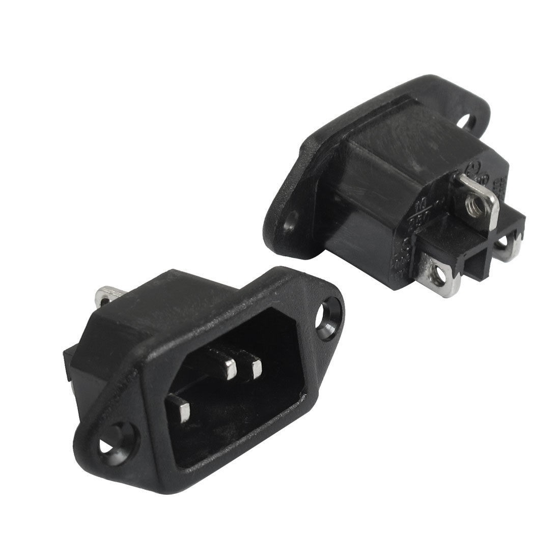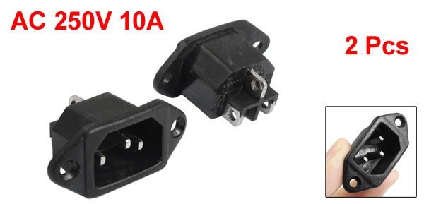 2 Pcs AC 250V 10A 3 Terminals C14 Plug Outlet Power Socket Adapter Black