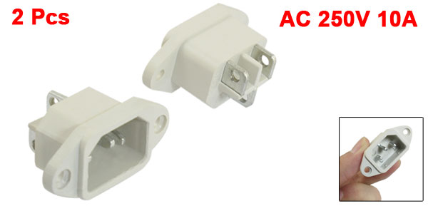 2 Pcs AC 250V 10A 3 Terminals C14 Plug Outlet Power Socket Adapter Offwhite