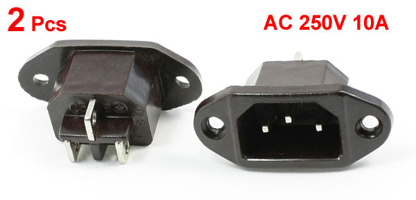 2 Pcs AC 250V 10A IEC320 C14 3 Pin Male Power Plug Black
