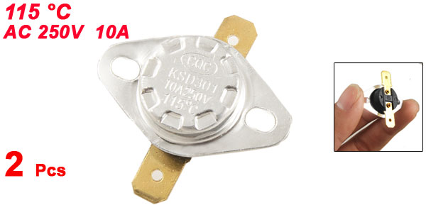 2 Pcs AC 250V 10A NC Temperature Control Switch Thermostat 115 Celsius KSD301