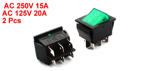 2 Pcs AC 250V/125V 15A/20A DPDT 6-Pin ON/OFF Boat Rocker Switches Green