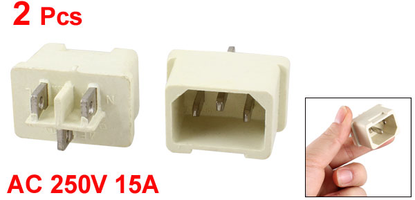 2 Pcs AC 250V 15A 3 Pin IEC320 C14 Plug Power Socket Adapter Off White