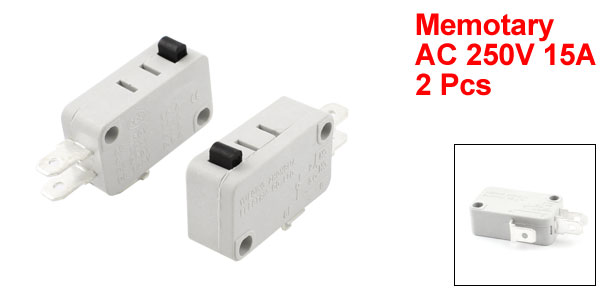 Product Name Micro Switch Actuator Type Memotary Rating AC 250V 15A Contact Type SPDT(1NO 1NC) Pin 3 Size(Approx) 37 x 22 x 10mm /1.5" x 0.87" x 0.4"(L*W*H) Holes Dia. 3mm / 0.12" Material Plastic, Metal Main Color White Weight 12g Package Content 2Pcs x Micro Switch - Reviews
