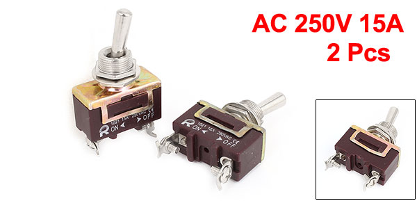 2 Pcs AC 250V 15A SPST On-OFF Control Dual Position Mini Toggle Switch