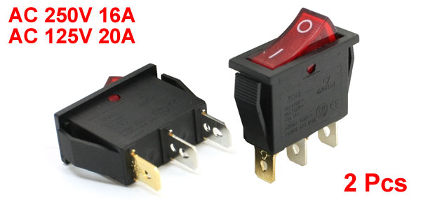 2 Pcs AC 250V/16A 125V/20A 3 Terminals SPST Snap Boat Rocker Switchs