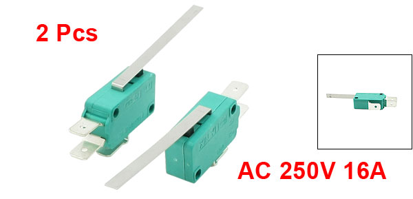 2 Pcs AC 250V 16A SPDT 3-Pin Long Straight Hinge Lever Limit Micro Switch Green