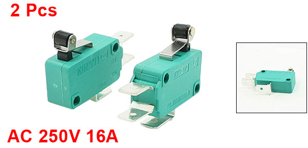 2 Pcs AC 250V 16A SPDT Short Hinge Roller Lever Momentary Micro Switch Green