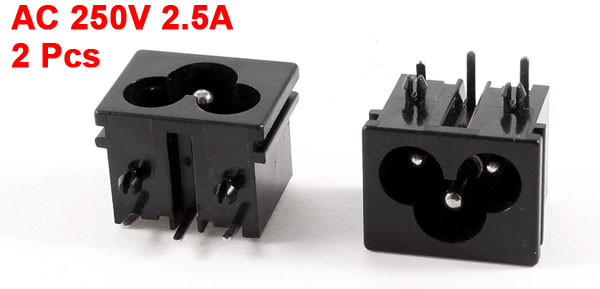 2 Pcs AC 250V 2.5A 3-Pin Clamp Type IEC320 C6 Power Inlet Socket