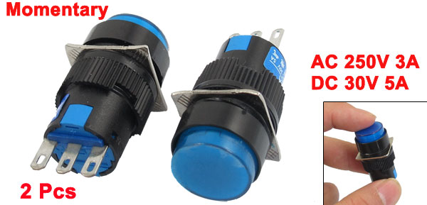 2 Pcs AC 250V 3A DC 30V 5A 3 Pin NO/NC Blue Round Momentary Push Button Switch
