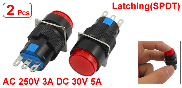 2 Pcs AC 250V 3A DC 30V 5A 3 Pin NO/NC Red Round Latching Push Button Switch