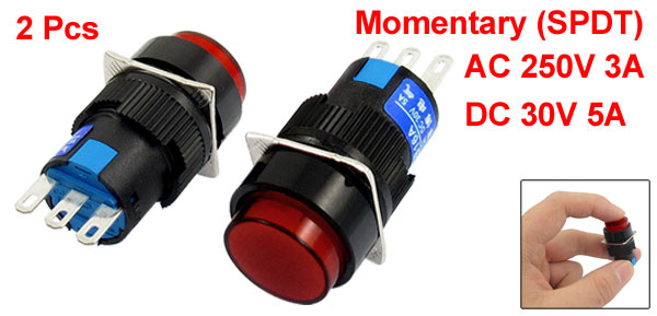 2 Pcs AC 250V 3A DC 30V 5A 3 Pin NO/NC Red Round Momentary Push Button Switch