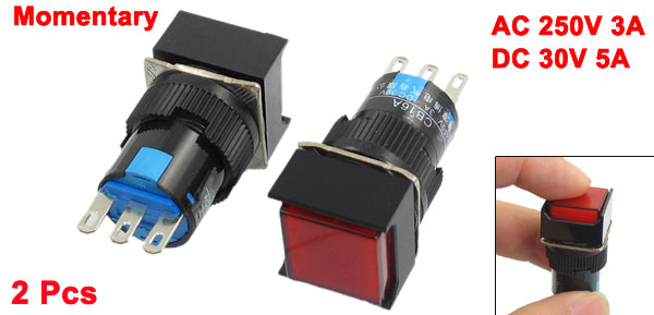 2 Pcs AC 250V 3A DC 30V 5A NO NC Red Sign Square Momentary Push Button Switch