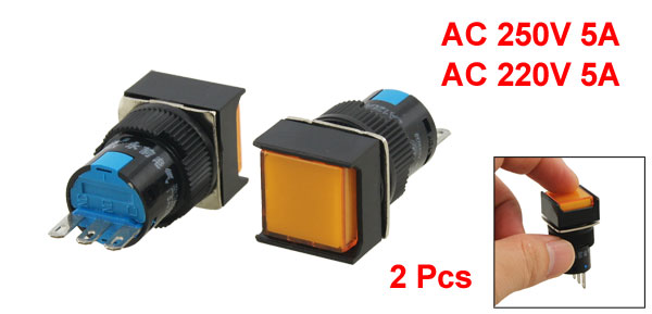 2 Pcs AC 250V 5A 1NO 1NC Orange Rectangle Latching 16mm Push Button Switch