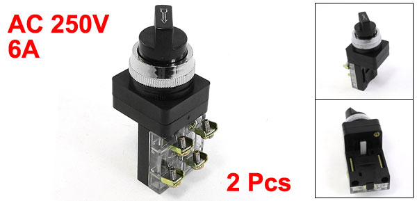Product Name Push Button Switch Contact Type 1NO 1NC (DPST) Action Type Latching(Rotary Selector) Position of Number 2 Position Insulation Voltage Max. 600V Ith 6A Ui AC 250V Terminal Quantity 4 Panel Cutout Diameter 25mm / 1" Fit Panel Max. Thickness 6mm / 0.24" Total Size(Approx) 3.2 x 3.7 x 8.6cm / 1.3" x 1.5" x 3.4" (L*W*H) External Material Plastic, Metal Color Black, Clear Net Weight 112g Package Content 2 x Push Button Switch - Reviews