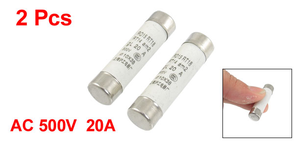 Product Name Ceramic Fuse Model RT14 RT18 RO15 Type Fast Blow Rated Voltage AC 500V Rated Current 20A Dimension 10 x 38mm/ 0.39" x 1.5" (D*L) Material Metal, Ceramic, Electronic Parts Main Color White, Silver Tone Net Weight 12g Package Content 2 x Ceramic Fuses - Reviews
