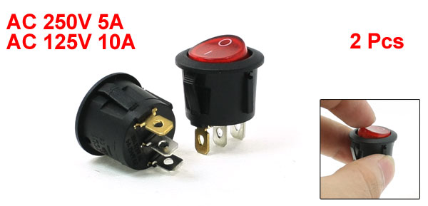 2 Pcs AC 5A 250V 10A 125V Red Light SPST ON/OFF Snap in Round Boat Rocker Switch