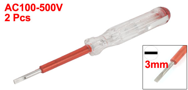 2 Pcs AC100-500V 3mm Volt Tester Pen Electroprobe Slotted Screwdriver Red Clear