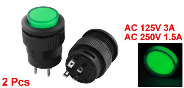 2 Pcs AC125V 3A AC250V 1.5A Momentary Green LED Light Push Button Switch