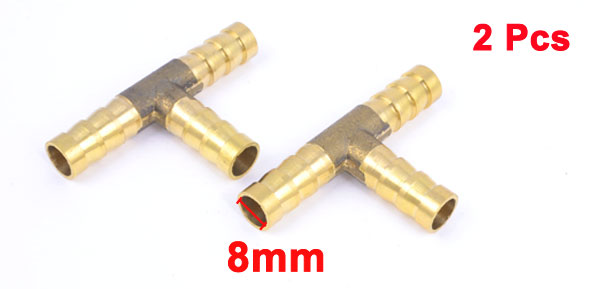 2 Pcs Air Pneumatic 8mm to 8mm T Design Brass Quick Joint Fittings Gold Tone