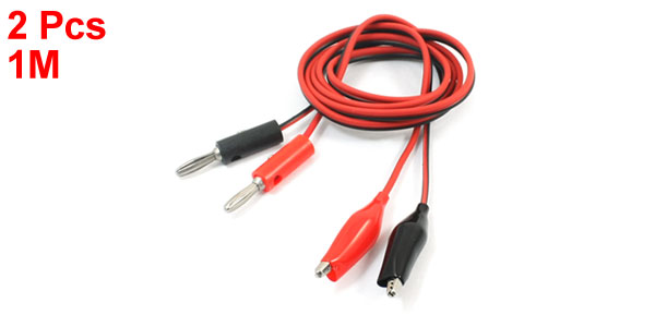 2 Pcs Alligator Clip to Banana Plug Multimeter Testing Lead Cable Black Red 1m