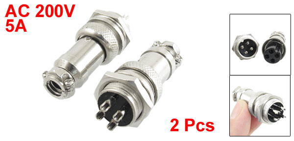 2 Pcs Aluminum Alloy Aviation Connector Plug 16mm 4P 4 Pin 5A 200V AC