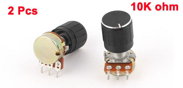 Product Name Potentiometer Resistance Value 10K ohm Adjustment Type Top Adjustment Type Single Linear (Type B) Features Knurled Shaft Shaft Diameter 6mm / 0.2" Shaft Length 13mm / 0.51" Mounting Thread Diameter 7mm / 0.3" Base Size 16 x 7.3mm / 0.63" x 0.29"(D*H) Knob Size 17 x 17mm / 0.67" x 0.67"(D*H) Total Height 29mm / 1.14" Material Metal, Electronic Parts Net Weight 21g Package 2 x Potentiometer - Reviews