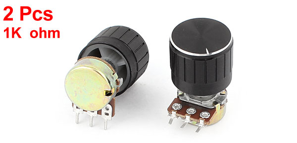 Product Name Potentiometer Resistance Value 1K ohm Adjustment Type Top Adjustment Type Single Linear (Type B) Features Knurled Shaft Shaft Diameter 6mm / 0.2" Shaft Length 13mm / 0.51" Mounting Thread Diameter 7mm / 0.3" Base Size 16 x 7.3mm / 0.63" x 0.29"(D*H) Knob Size 21 x 17mm / 0.8" x 0.67"(D*H) Total Height 29mm / 1.14" Material Metal, Electronic Parts Net Weight 23g Package 2 x Potentiometer - Reviews