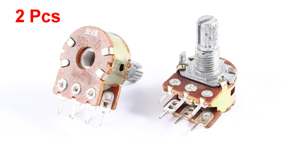 2 Pcs B50K 50K Ohm 6 Terminals Dual Linear Rotary Taper Potentiometers
