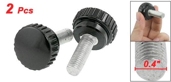Product Name Knurled Knob Type Screw On Head Diameter 30.6mm / 1.2" Thread Length 30mm / 1.18" Thread Diameter 10mm / 0.4" Total Height 47.5mm / 1.87" Material Metal & Plastic Color Silver Tone & Black Weight 67g Package Content 2 x Knurled Knobs - Reviews