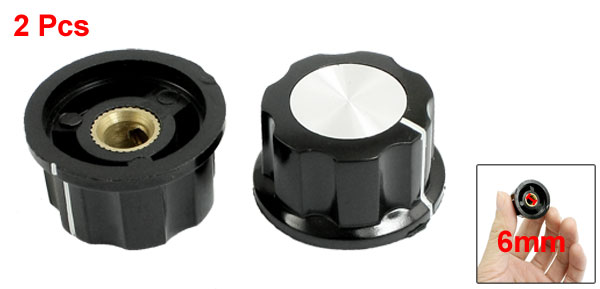 Details2 Pcs Black 15mm Top 6mm Shaft Insert Dia Potentiometer MF-A03 Rotary Knobs  Product Name MF-A03 Rotary Knob Material Plastic, Metal Color Black Fit for Shaft Hole Dia. 6mm/ 15/64" Knob Top Diameter 15mm/0.59" Overall Size 27 x 15mm/ 1.1" x 0.59"(D*H) Weight 25g Package Included 2 x MF-A03 Rotary Knob