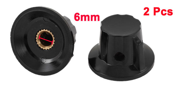 Details2 Pcs Black 18mm Top 6mm Shaft Insert Dia Potentiometer Rotary Knobs Cap  Product Name Potentiometer Knob Material Plastic, Metal Color Black Fit for Shaft Hole Dia. 6mm/ 15/64" Knob Top Diameter 18mm/0.71" Overall Size 29 x 18mm/ 1.1" x 0.59"(D*H) Weight 15g Package Included 2 x Potentiometer Knob