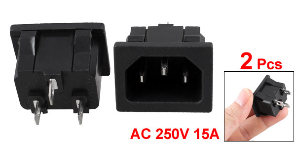 2 Pcs Black 3 Pin IEC320 C14 Plug Power Socket Connector AC 250V 15A