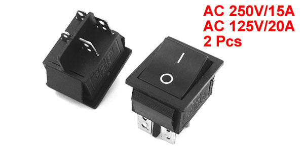 2 Pcs Black 4 Pins DPST On/Off Rocker Switch AC 250V/15A 125V/20A