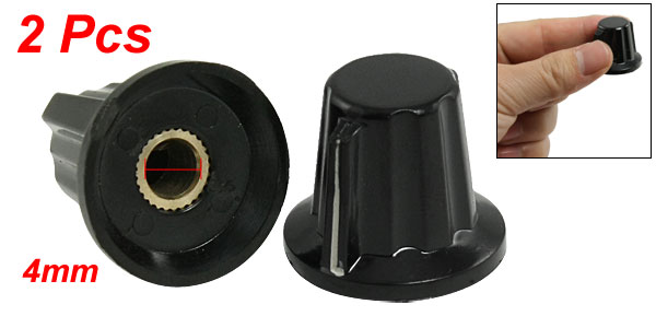 2 Pcs Black 4mm Shaft Hole Diameter Push on Pointer Potentiometer Knobs