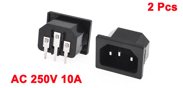 2 Pcs Black Bent 3 Pins C14 Inlet Power Plug AC250V 10A