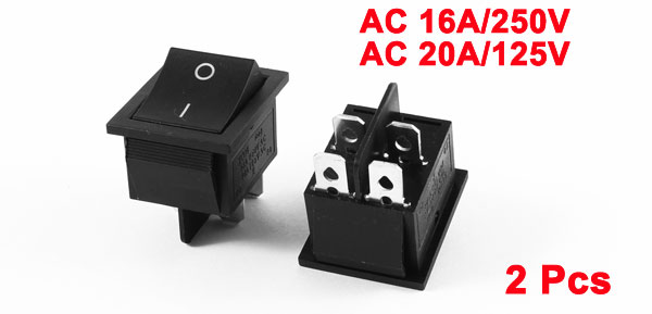 2 Pcs Black Plastic Shell AC 16A/250V 20A/125V 4 Pin DPST On/Off Rocker Switch