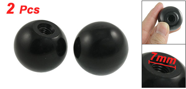 2 Pcs Black Round Plastic M7 Thread 32mm Dia Ball Lever Knobs