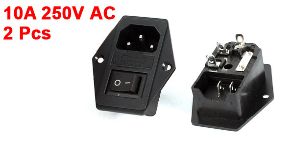 2 Pcs Black SPST Rocker Switch Fuse Holder IEC320 C14 Power Inlet Panel Socket