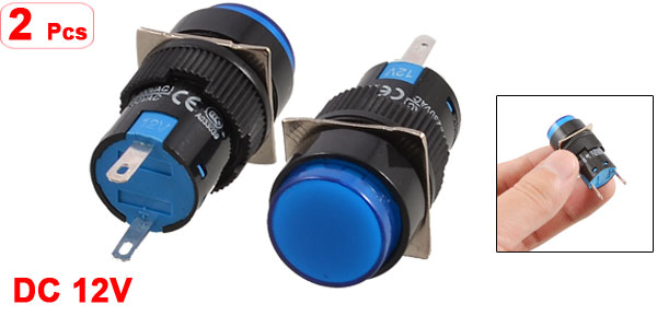 Details2 Pcs Blue Round Cap 2 Pins Fault Signal Lamp Indicator Light DC 12V Hiodq  Product Name Indicator Light Model No. LA128AY-D Working Voltage DC 12V Light Color Blue Shell Color Black, Blue Terminals Quantity 2 Pins Mounting Hole Diameter 16mm / 0.63" Overall Size (Approx) 18 x 40mm/ 0.71" x 1.6" (D*H) Weight 14g Package Content 2 Pcs x Indicator Light