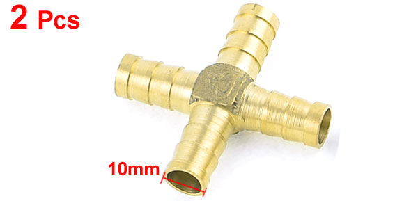2 Pcs Brass 4 Way Cross Shape 10mm Hose Barb Connector Pipe Joint Fitting