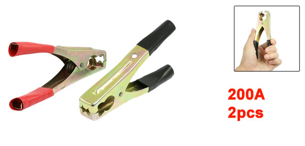 2 Pcs Car Black Red 200A Copper Plated Metal Tip Battery Clamp